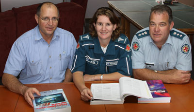 May 8, 2009 - Kingaroy Local Ambulance committee president John Box has presented the local Ambulance Station with new textbooks to add to its paramedic training library. This followed a review by paramedic Ben Phipps, in consultation with Officer-in-Charge Brian Long, as to which new publications would enhance the library. There are currently 10 paramedics based in Kingaroy. The textbooks were presented at a recent meeting which also introduced new Wide Bay Area Director Rodger Williams, based in Bundaberg. Outgoing Area Director Neil Reid has been promoted to Area Director Sunshine Coast. LAC President John Box, Paramedic Jodi Calvert and new Wide Bay Area Director Rodger Williams